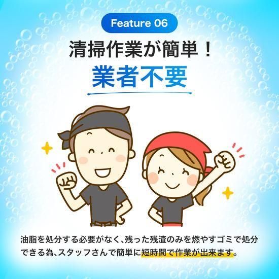 ✅清掃業者に依頼しなくても、スタッフさんで簡単に短時間でグリストラップの清掃ができます。