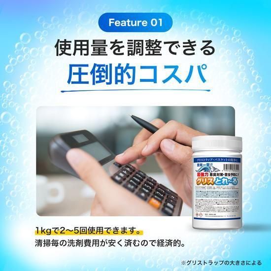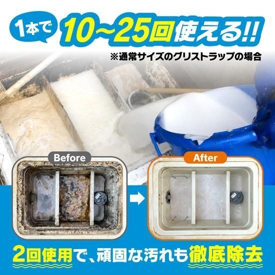 ✅5kgで10回〜25回程度使用出来るのでコストパフォーマンスにとても優れています。※1回の使用量はグリストラップの大きさなどにより変動します。(500g~200g/回)